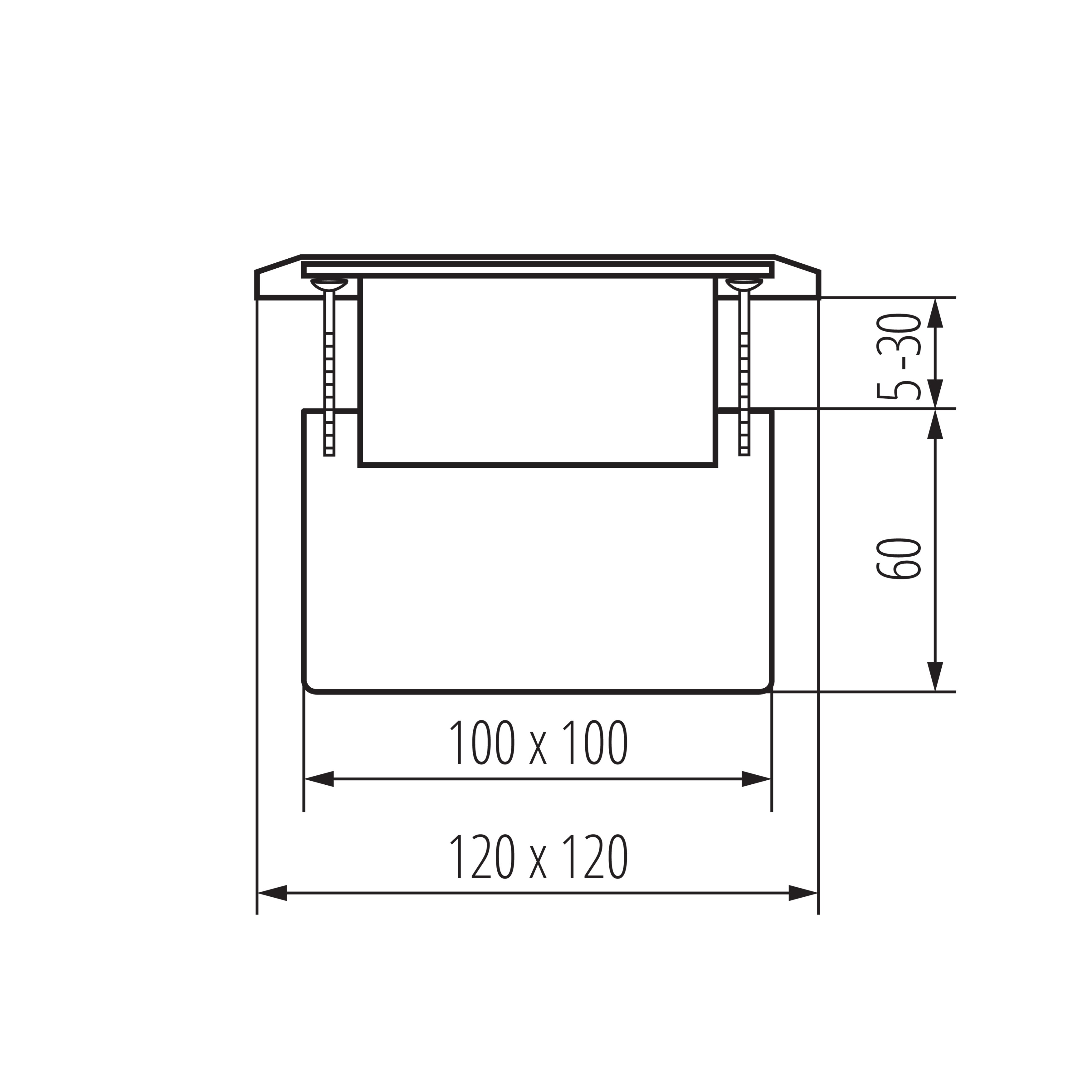 BIURO+ Krabice kovová do podlahy čtvercová POP-UP 1+1/2xM45 - mosaz
